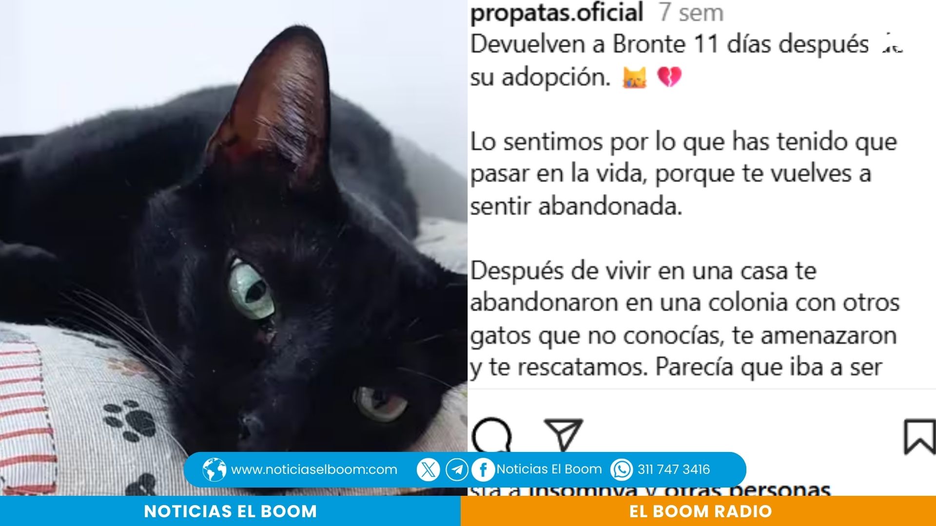 La fundación Propatas Protectora, con sede en Valladolid (España), compartió recientemente el conmovedor caso de Bronte, una gata que fue adoptada pero devuelta apenas 11 días después de iniciar su nueva vida en un hogar. Bronte ya había sido rescatada previamente de una colonia felina donde vivía en condición vulnerable y con escasa socialización.
