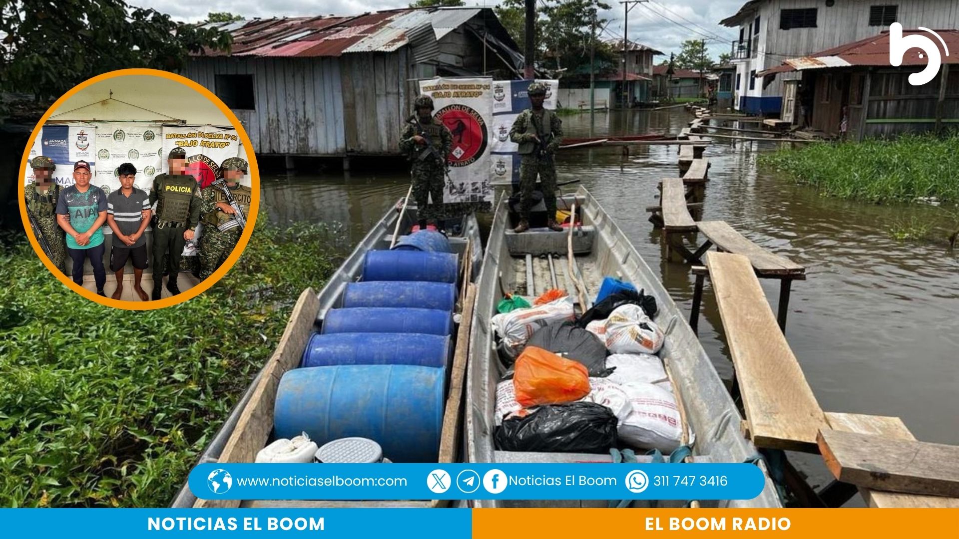 Durante la operación, las autoridades decomisaron 365 galones de insumos líquidos, 245 kilos de insumos sólidos, además de dos botes de fibra de vidrio y dos motores fuera de borda, afectando así la cadena logística y financiera del grupo armado ilegal.