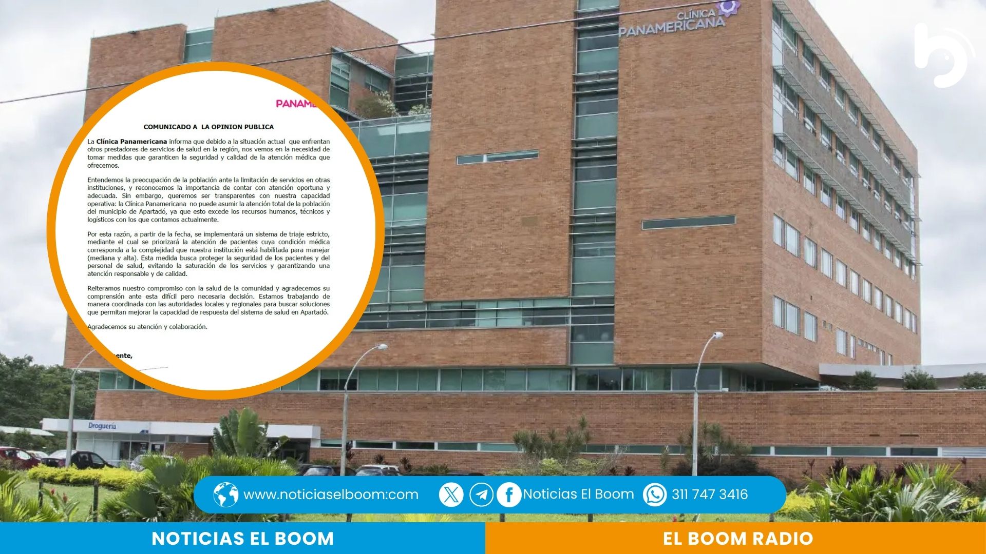 La Clínica Panamericana se pronunció a través de un comunicado oficial en el que explicó las medidas que se han visto obligados a tomar ante la difícil situación que enfrenta el sistema de salud en la región de Urabá.