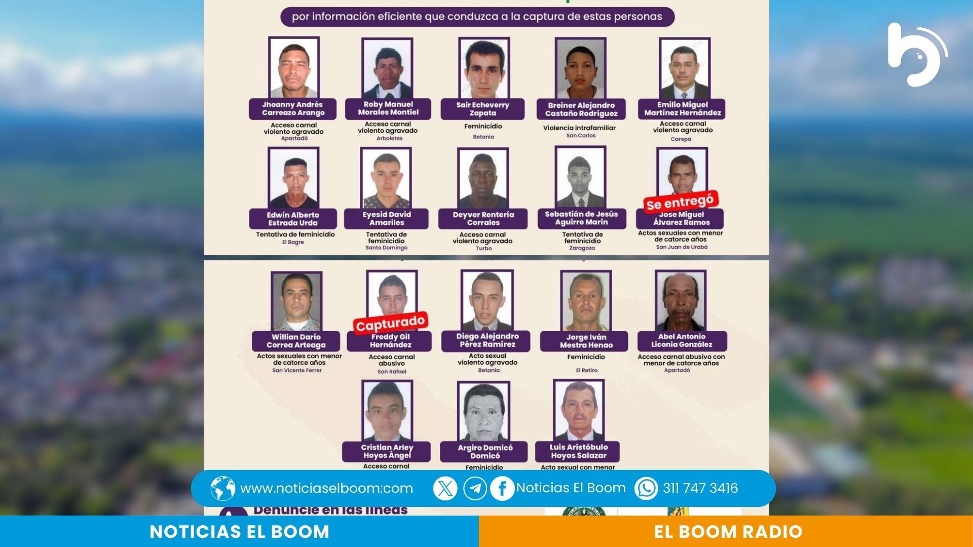 Las autoridades en Antioquia divulgaron el cartel de “Los más buscados” por cometer delitos contra niñas y mujeres en el departamento, ofreciendo una recompensa de hasta 50 millones de pesos por información eficiente que permita dar con la captura de estas personas.