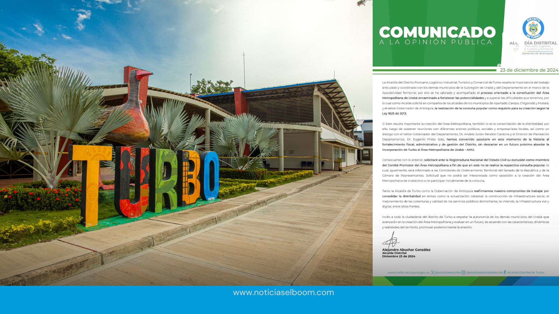 Aunque ya se había solicitado ante la Registraduría la convocatoria a una consulta popular entre marzo y mayo de 2024 para definir la integración de Turbo al AMU, la administración municipal tomará las medidas necesarias para ser excluida del comité promotor.