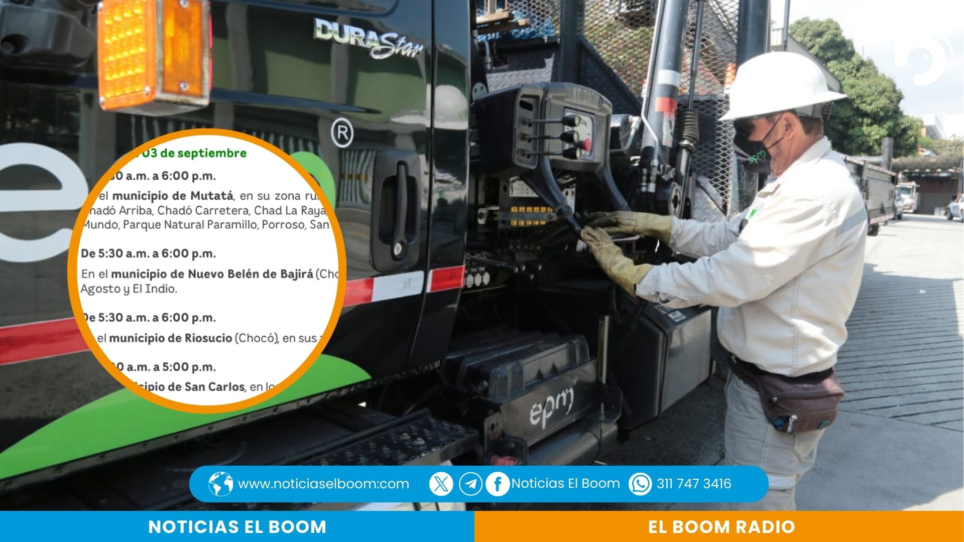 EPM informó que, debido a trabajos de mantenimiento en subestaciones y en las redes de subtransmisión, será necesario interrumpir temporalmente el servicio eléctrico en varias localidades de Antioquia y Chocó.